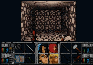 After a well presented intro that is completely done in hires interlace you are presented with the options screen. After selecting the 'start new game' option I found myself looking in astonishment at the screen. Everything is done in Hires interlace. The beatifull drawn stills that appear when you enter a new location and even the parts when you walk around in one of the large dungeons. It all looks great.