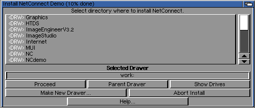 A NetConnect drawer will be created on your hard drive. We recommend that you install to your work: or hd1: partition (ie. with a lot of space).