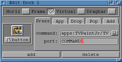 MUIRexxDock =========== This `MUIRexx' application is used to build and maintain utility docks. There is currently no documentation available, but hopefully operation is intuitive enough to figure out. Try opening the edit window (using the dock's menu) and drag and drop either a dock icon or an icon from the Workbench onto the edit window icon area (above the cycle gadget). After editting the dock item either drag the icon back to the dock (replacing the icon it is dropped on) or press the [add] button to add the icon to the end of the dock. Also while the edit window is open dock items in the dock can be rearranged by dragging one icon onto another. Dock items can be buttons (typically used to start programs), switches (typically used as a toggle), docks (other subdocks of items), or pop groups. Pop groups may consist of any set of objects and are created in the edit window by entering `MUIRexx' commands into the list located on the 'Pop' register page. Simple buttons may be easily created by dropping command icons from the Workbench onto the 'Pop' list. To edit or delete command lines in the 'Pop' list simply double click on the line and edit the string or press the [del] button to delete. Entering a string will add the command line to the end of the 'Pop' list. Lines in this list are drag sortable. Also, additional commands may be entered into the list located on the 'Add' register page. These additional commands are inserted into the beginning of the group that will contain the dock item. This feature is particularly useful for including context menus with specific dock items.![]()