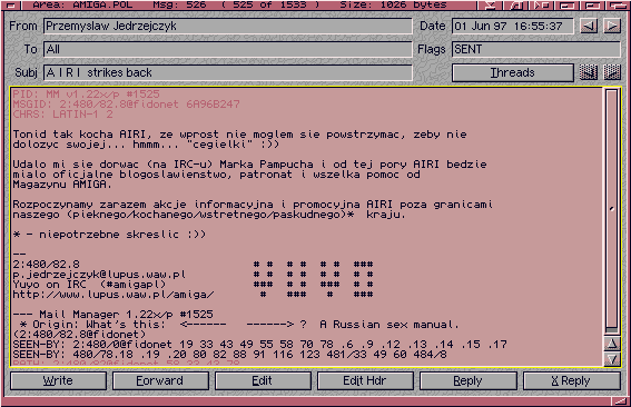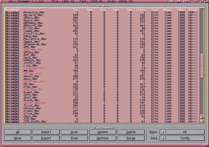 MailManager is an integrated editor/tosser/scanner of FTN (Fidonet Technology Network) mail - currently the most advanced product of this class on the Amiga, being also much more advanced than most such products on other platforms.