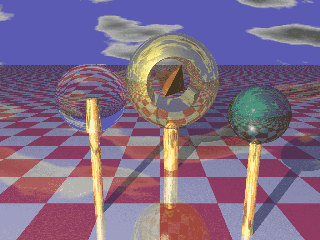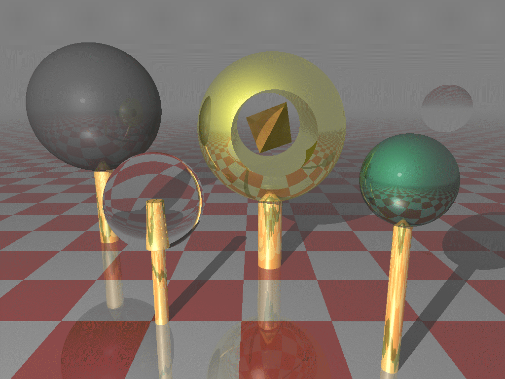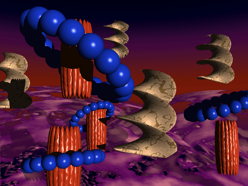 | 1024x768 Ray-Traced Pillars In The Ocean